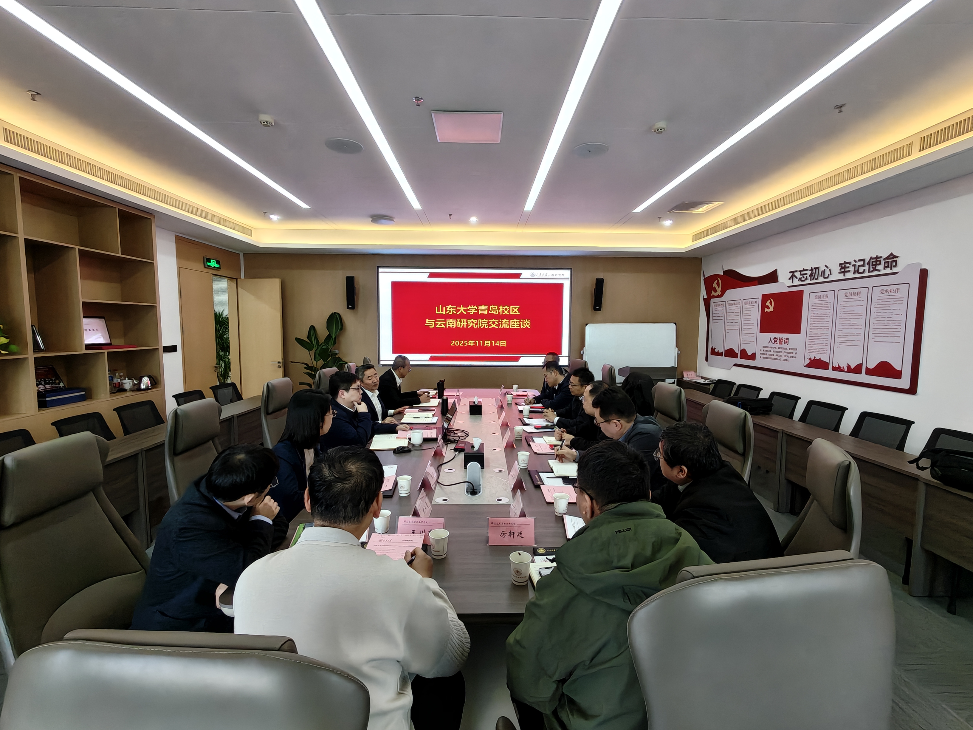2025年11月14日,山东大学青岛校区代表团一行赴山东大学云南研究院进行交流座谈,双方围绕学科建设、社会服务、校企合作及科研成果转化等议题进行了深入探讨,共谋发展新篇。