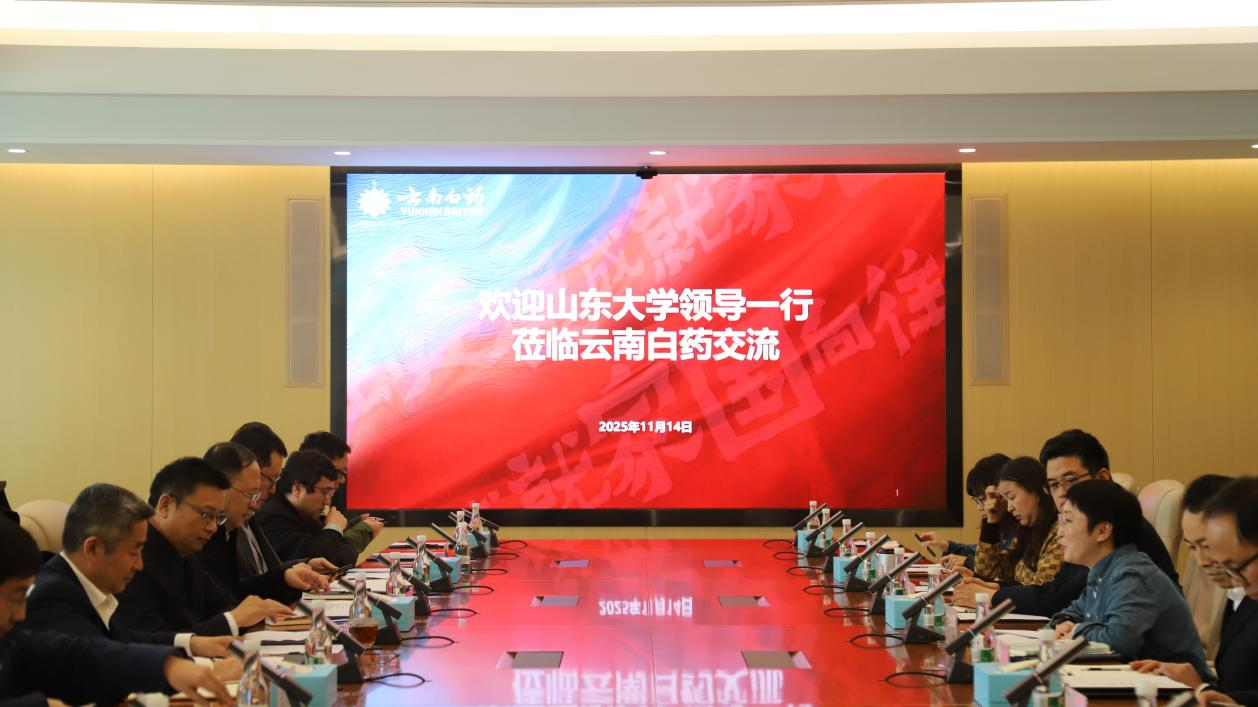 2025年11月15日,在山东大学云南研究院的组织下,山东大学青岛校区周加强副校长、服务青岛办公室张剑主任、云南研究院王明星院长率领微生物改造技术全国重点实验室(山东大学微生物技术国家重点实验室)核心科研团队,赴云南白药集团开展交流访问。双方通过参观云南白药博物馆、举办专题座谈会等形式,就中医药传承创新、微生物技术应用转化等核心议题深入研讨,为校企协同发展搭建坚实桥梁。
