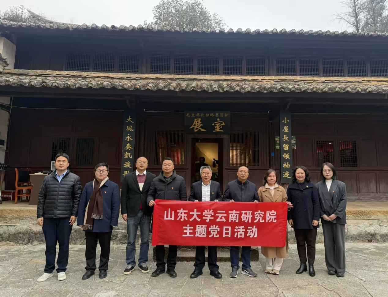 为深入践行新时代党的建设总要求,巩固拓展主题教育成果,推动党建与业务深度融合,2026年1月7日,山东大学云南研究院一行在院长王明星同志带领下,赴昆明市禄劝县翠华镇开展党建活动,并就红色文化资源保护利用、校地科技与教育合作进行实地调研。禄劝县教体局局长吴明新、翠华镇党委副书记、镇长张熹等陪同调研。